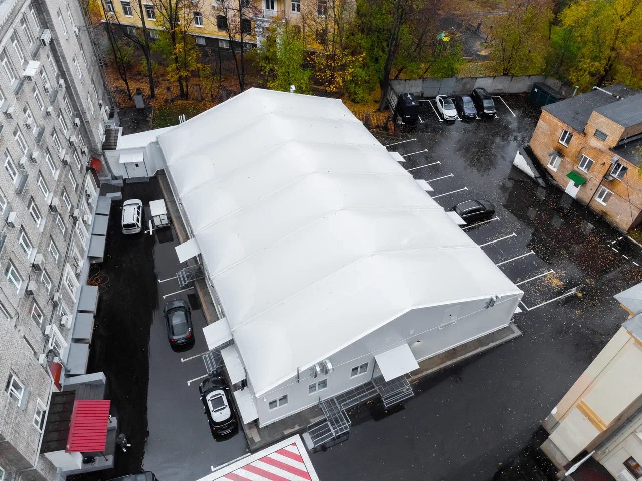 Каркас конструкции из анодированного алюминия в совокупности с тентом ПВХ обеспечивает малый вес конструкции. Проще перевозить и монтировать, в том числе на поверхности с ограниченной допустимой нагрузкой.