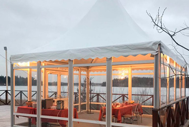 Конструкция собирается в короткие сроки. Возможна многократная установка шатра, изменение размера (увеличение/уменьшение) конструкции на месте возведения. Это уменьшает расходы.